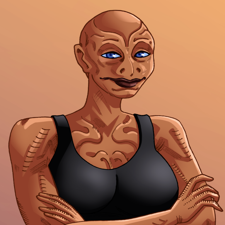 | Physical Description | Tall, lanky yet curvaceous like a swimmer, Vasha tends to draw attention wherever she goes despite not being as conventionally attractive by humanoid standards. Her limbs are muscular from years of hard work assisting her father's agricultural business in their village and continuing to do so even after Kelpien society modernized. |