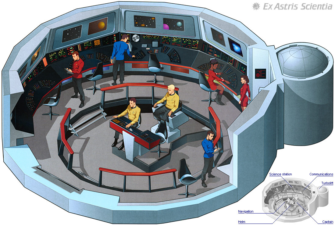 The bridge serves as the main control center of the starship and is located on deck 1 on top of the primary hull.