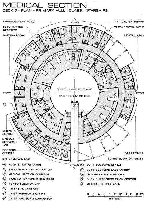 | Description | The medical section on the latest Constitution-class model contains the most advanced medical facilities and systems comparable to a starbase. It is designed to be a minature hospital for deep space exploration. This section contains the main sickbay, various medical labs, wards, operating theaters and offices for medical personnel. |